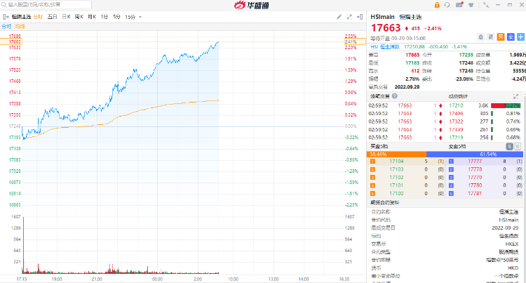 隔夜美股三大股指震荡走高。截至收盘,道指涨1.88%,纳指涨2.05%,标普涨1.97%。中概股多数收涨,微博上涨8.2%,阿里巴巴涨4.01%,拼多多涨3.26%。多项技术指标显示美国股市可能超卖,但许多华尔街人士担心投资者尚未消化盈利放缓和美联储加息的影响。恒生指数期货夜盘大幅反弹超400点或2.41%,或对日内交易带来乐观情绪。