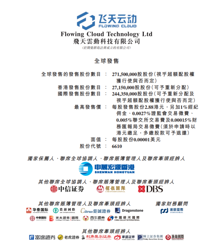 华盛资讯9月29日消息, 飞天云动(06610)于2022年9月29日-10月7日招股,该公司拟发行2.715亿股,预期股份将于2022年10月18日上市买卖。前往新股中心,申购新股>>