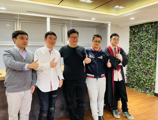 丁磊(中)王思聪(左二)和张栋(左一)在一起