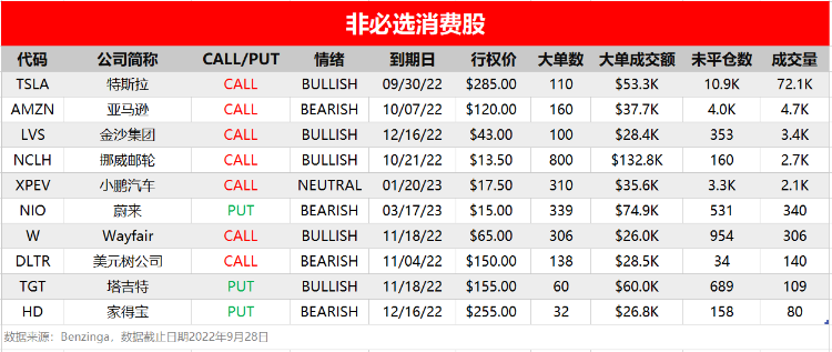 周三(9月28日),非必选消费、信息技术和能源板块相关个股出现较多活跃单,按照当日成交量排行,榜单TOP 10分别如下: