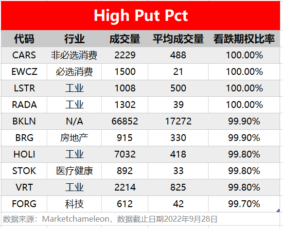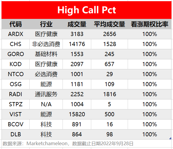 注:High Call Pct/High Put Pct是指相关期权标的当前看涨/看跌比例大小,该比值越高意味着该期权标的看涨/看跌的合约占比越高。