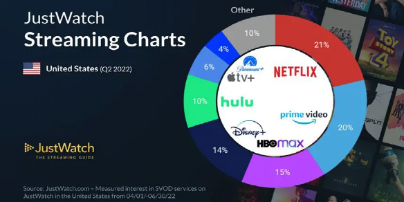 在各种服务之间转换的障碍一直很低,而且在可预见的未来可能会保持低水平。迪斯尼已经领先于Netflix,拥有2.211亿用户,而Netflix的用户为2.207亿用户。HBO、Discovery+、Hulu、Apple TV、Prime Video、Peacock和Disney+都提供高质量的节目,用户可以从中选择。