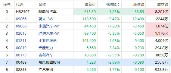 9月30日讯,港股汽车股早盘集体走低,截至发稿,蔚来大跌9.47%领跌,零跑上市次日再跌超12%,小鹏汽车跌超7%,理想汽车跌超5%,比亚迪现跌4.68%。