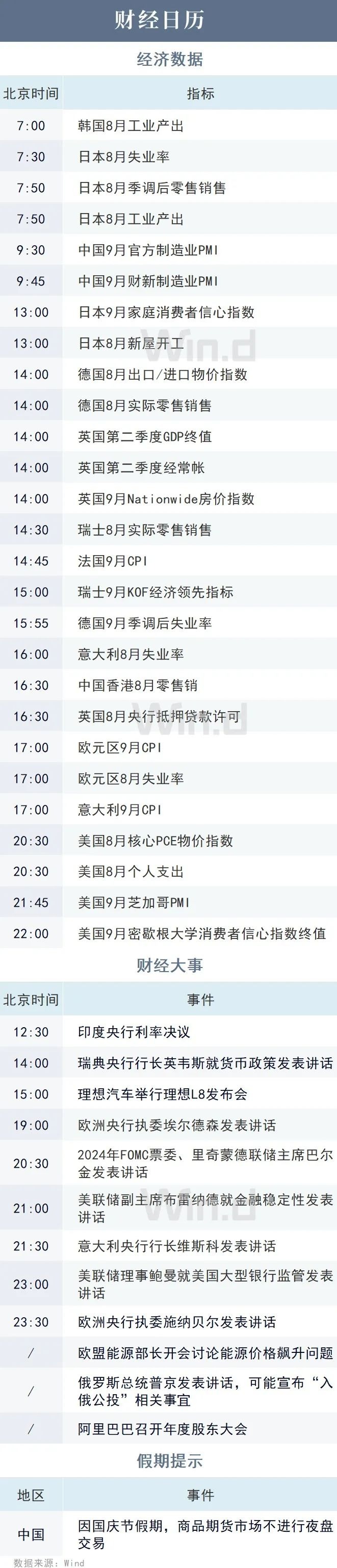 重要经济日程&数据