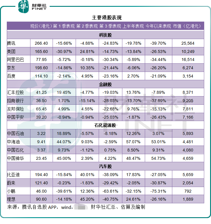 今年前三个季度,港股市场上的大型科技股大跌,拖累了整体大市表现,恒生指数今年以来累跌26.39%,恒生科技指数更大跌39.16%。