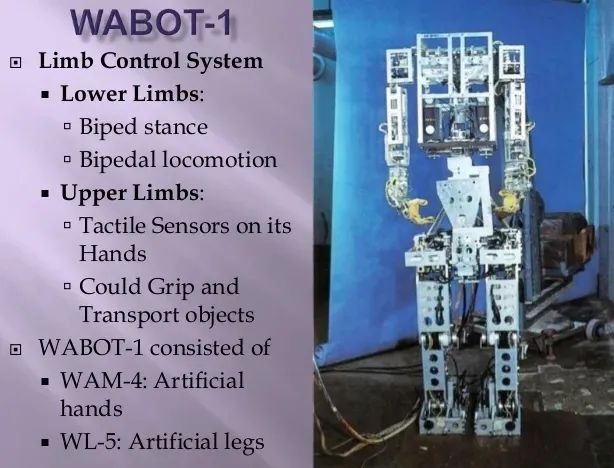 1972年,早稻田大学就已经发明了第一台全尺寸人形机器人WABOT,能够用日语交流,房间导航,抓运物体。