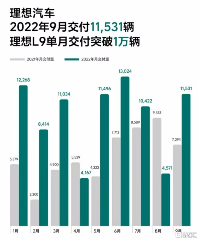 2022年9月,理想汽车共交付新车11,531辆,同比增长62.5%。其中,家庭智能旗舰六座SUV理想L9,在首个完整月交付10,123辆,是首个单月交付量过万且售价在40万以上的中国品牌车型。第三季度累计交付26,524辆,同比2021年第三季度增长5.6%。截止到2022年9月30日,理想汽车累计交付量为211,015辆。