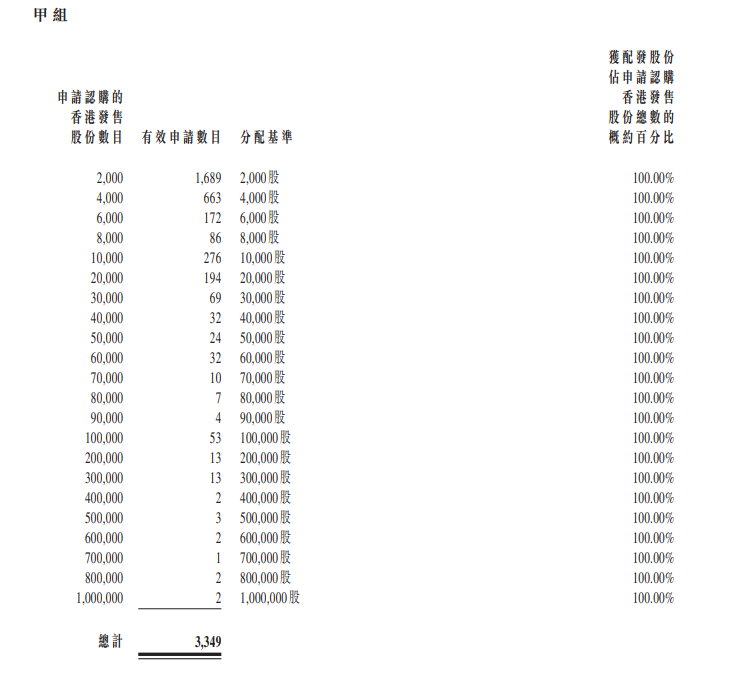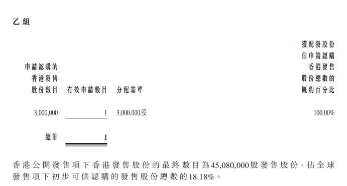 其中香港公开发售已获轻微超额认购,公司已接获合共3350份根据香港公开发售认购合共4508万股香港发售股份的有效申请,相当于香港公开发售项下初步可供认购的2480万股香港发售股份的总数约1.82倍。