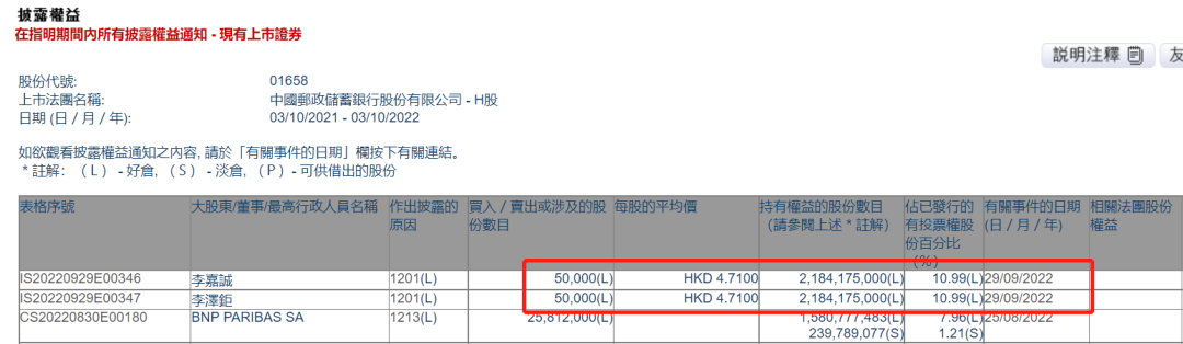 9月29日,李嘉诚卖出5万股邮储银行H股,成交价4.71港元,套现23.55万港元,减持完成后李嘉诚依然持股10.99%,值得注意的是,这是李嘉诚首次被爆出减持邮储银行。