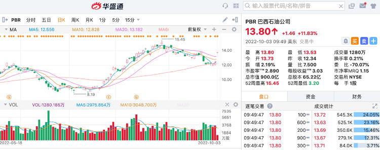 巴西石油公司(PBR)涨近12%,道达尔(TTE)、英国石油(BP)、雪佛龙(CVX)涨近5%,埃克森美孚石油(XOM)涨近4%。