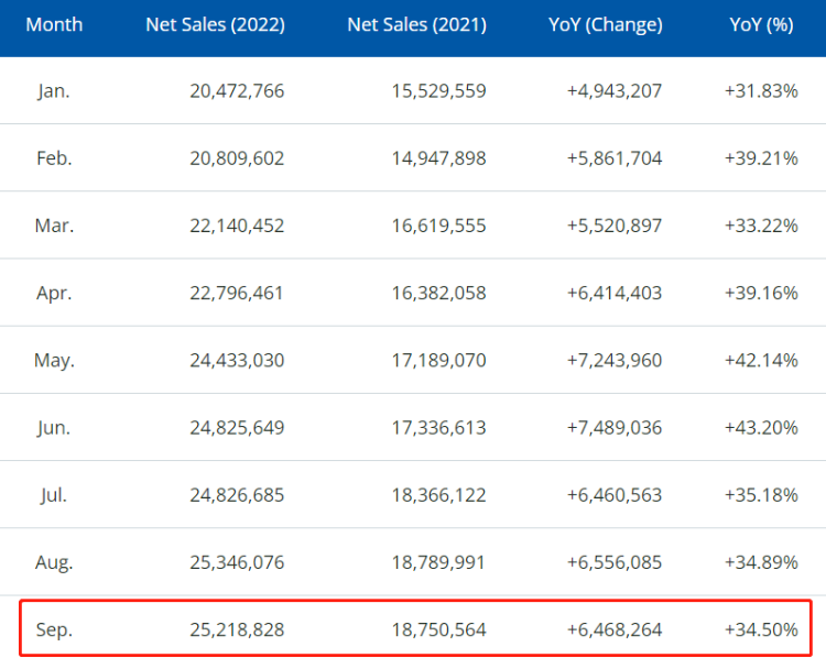 据联电官网,该集团9月销售额252.18亿新台币,同比增长34.5%。过去9个月,该集团销售额同比增长37.01%,至2108.7亿元新台币。据IC Insight发布的最新报告,功率半导体销售额在2022年有望增长11%,预计2022年达到245亿美元,连续第六次创下历史新高,这主要是因为其平均销售价格在半导体领域十多年来增幅最高。