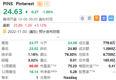 Pinterest盘前涨超5%, 高盛看好用户增长趋势的改善