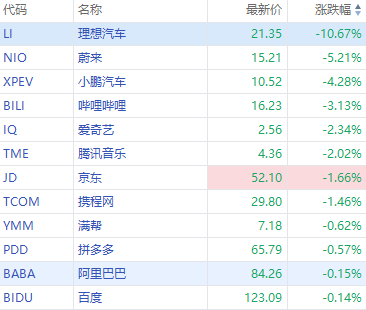其他个股,哔哩哔哩跌超3%,爱奇艺、腾讯音乐跌超2%,京东、携程跌超1%。