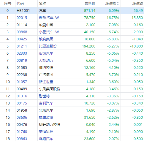 10月7日消息,汽车股集体走低,理想汽车大跌超17%,蔚来、小鹏跌近7%,长城汽车跌近6%,比亚迪股份跌超4%。