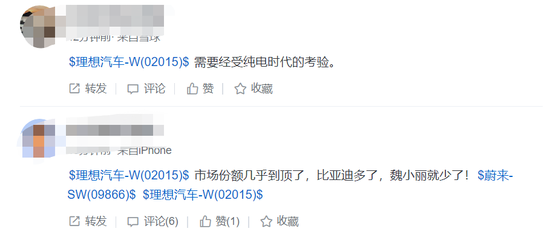 同样在社区平台,不少股民对理想汽车未来销量不乐观,且认为理想汽车增程式需要经受纯电时代的考验。还有不少股民表示,“感觉理想好就买车吧,千万别买股票”。