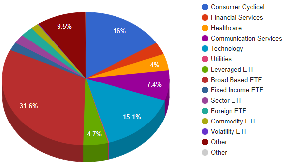 分板块看,行业板块中非必选消费、信息技术和通信服务成交量位列前三,非必选消费成交占比16%,信息技术成交占比15.1%,通讯服务成交量占比7.4%。ETF期权成交量保持高涨,宽基ETF期权成交占比31.6%,杠杆ETF期权合约占比4.7%。