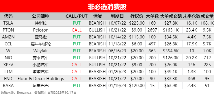 上周五(10月7日),非必选消费、信息技术和能源板块相关个股出现较多活跃单,按照当日成交量排行,榜单TOP分别如下: