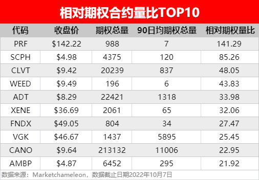 注:相对成交量比,是指当前交易日期权成交数量与90日平均期权成交数量的比值,相对成交量比越高,意味着该期权标的近期活跃度越高,不同于期权成交总量,该量比指标可以帮助发现一些期权成交数量绝对值不高,但是近期成交数量显著上升的期权标的。