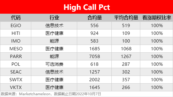 注:High Call Pct/High Put Pct是指相关期权标的当前看涨/看跌比例大小,该比值越高意味着该期权标的看涨/看跌的合约占比越高。