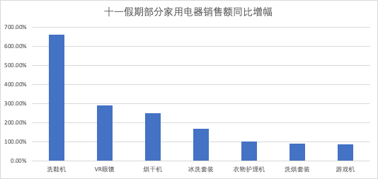 近期以来,家庭消费比重持续提升,品质化、智能化、精细化的升级趋势在这个假期得到了充分的体现。消费者选择居家休闲,陪伴家人度过美好假期的同时,利用假期为家中添置新的物品,带动了家电家居消费增长迅速,尤其以智能家电、厨房家电等改善型商品增长最为明显。数据显示,假期期间,烘干机尤其受到追捧,消费额较2021年假期同比增长249%,洗烘套装消费额同比增长92%,衣物护理机、洗鞋机等细分品类销售额也取得了超过一倍的增长。作为居家休闲的新设备,十一假期,VR眼镜销量较去年假期同比增长290%,游戏机也取得了86%的增长。厨房作为重要的生活场景,相关品类增长迅速,空气炸锅,咖啡机、多用途锅等厨房用品消费金额平均同比增速超过50%。