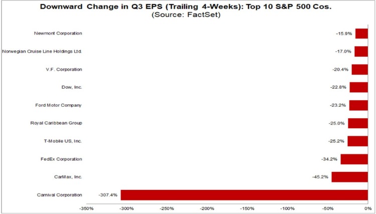 3、第三季度每股收益预期下调幅度较大的公司