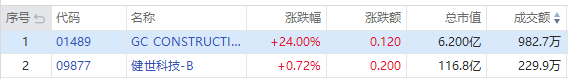 华盛资讯10月10日讯,泥水承建商GC CONSTRUCTION $01489.HK 首挂高开24%,一手账面浮盈600港元,盘前成交额982万港元,此前暗盘收涨24%。