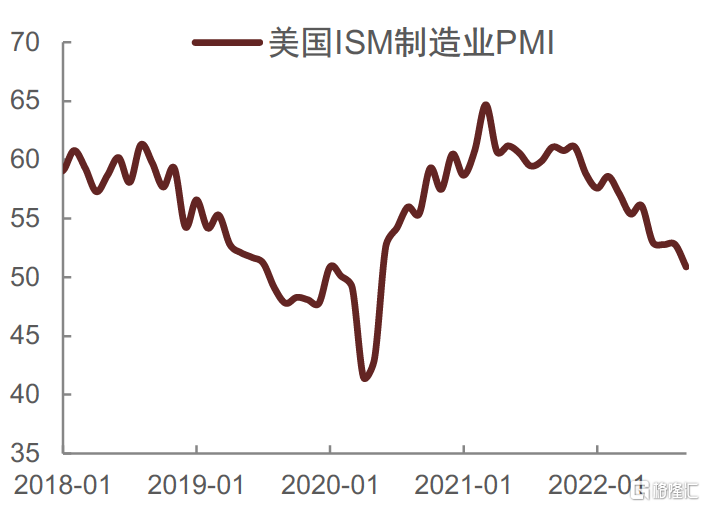 近期海外市场波动性增加(图1)。受美联储强硬态度和英国减税计划冲击,9月下旬以来全球债券收益率快速上升,9月末则小幅回落。10月3日美国公布9月ISM制造业PMI(50.9),大幅低于预期且创2020年6月以来新低(图2),缓解了市场对美联储继续激进加息的担忧,因此风险偏好回升,股市上涨、国债收益率出现下行。但10月7日公布的9月非农数据好于市场预期,导致市场对于美联储11月份加息75bp预期再次升温,股市明显回调、债市收益率大幅上行。