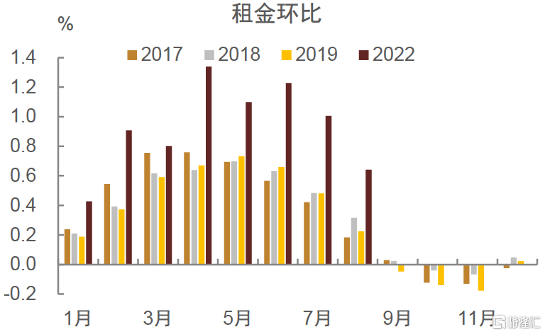图14: 近期租金价格增速出现回落,但仍高于往年同期