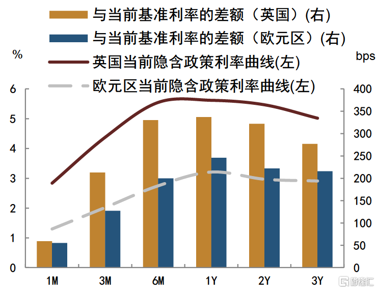 不过欧央行与英央行目前仍将主要目标定于控制通胀,整体来看货币政策偏鹰姿态并未改变且年内或将持续,我们预计英国年内剩余两次议息会议可能分别加息75bp、50bp,政策利率回升至3.5%,欧央行不排除10月继续加息75bp的可能性,年内存款便利利率或升至1.75%左右,欧洲整体加息停止时间或晚于美国一个季度,其中英国加息幅度可能不会低于美国甚至更高。