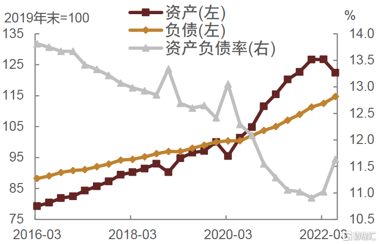 图12: 此前财政补贴令居民资产负债表大幅改善,近期资产负债率上升但仍低于疫情前