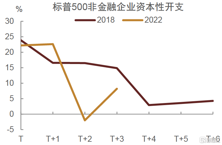 资料来源:Wind,中金公司研究部(注:为保证可比性,计算资本性开支的公司样本为Wind上SP500 WIND行业下有连续数据的公司,非SP500全部公司;对2018系列来说,T对应2018年Q1;对2022系列来说,T对应2021年Q3;横轴间隔为季)