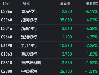 快讯:内银股集体走低 青岛银行、招商银行跌超6%