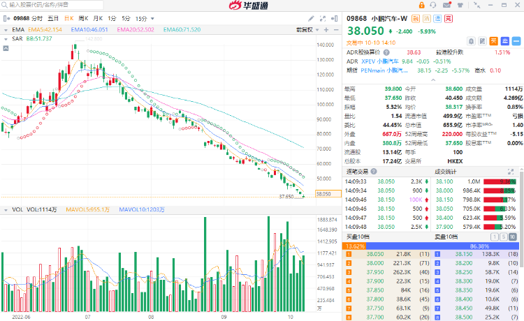 据港交所文件,10月3日,摩根大通取得了小鹏汽车 $09868.HK 223.5万股的保证权益,持股比例从6.94%增加到7.11%。值得注意的是,小鹏H股股价持续下挫,截至发稿,报38.05港元每股,盘中续刷新低,市值655.9亿港元。