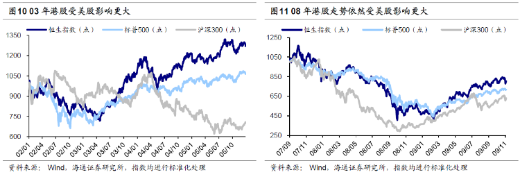 回顾历史,港股见底往往需要美股和A股企稳回升。2000年以来港股经历过五次大底,分别发生在03/04、08/10、11/10、16/02、20/03。通过梳理这五次底部特征,我们发现港股见底往往需要美股和A股企稳回升。具体而言: