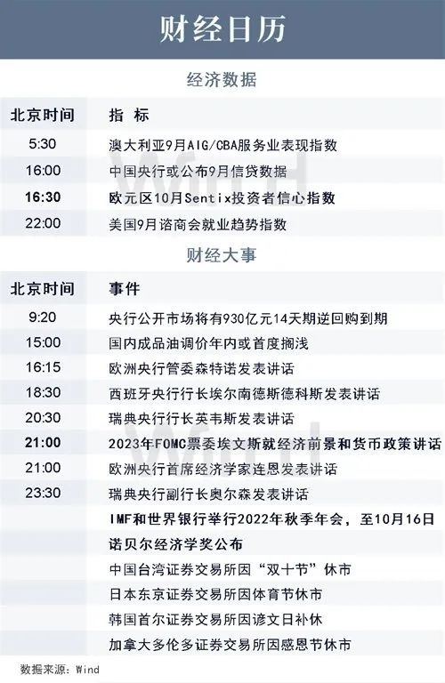 展望本周,美联储将公布9月议息会议的纪要,美国政府周四将公布关键的9月CPI报告,美国大型银行也将开启业绩多半将蒙上阴霾的财报季。其中,美联储最新一次政策会议的会议纪要将于当地时间本周三公布,可能会让令人们对美联储抗击通胀的决心有更多了解。交易员也将密切关注将于周四公布的美国9月CPI数据。