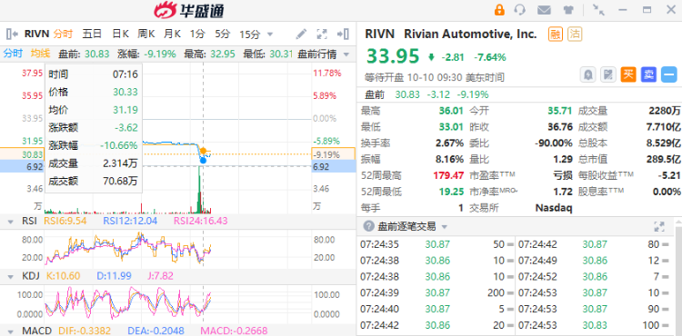 6、Rivian盘前一度跌超10%,因紧固件松动召回所有车辆