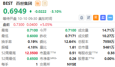 百世集团盘前一度涨超9%,与中移国际探索智慧物流新机遇