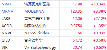 部分抗疫概念股走高,诺瓦瓦克斯医药涨超10%,Moderna $MRNA 涨超3%。美国传染病专家福奇上周警告,如果随着天气变冷,出现一种新的高传染性新冠变异毒株,“不应感到惊讶”。此外,Novavax公司周一表示,它为18岁及以上的成年人提供的COVID-19加强型疫苗得到了瑞士的支持。