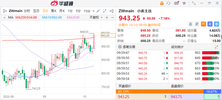 当地时间周一(10月10日),受俄乌冲突局势再度升级影响,芝加哥小麦期货价格一度飙升7%,今年以来已累计上涨了20%。