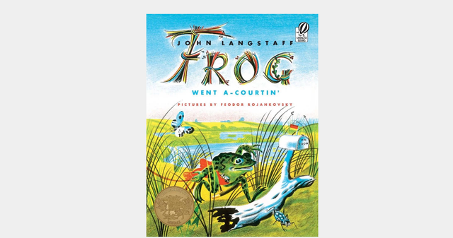 这本书由音乐家、教育家、绘本作家约翰·兰斯塔夫(John Langstaff)改编自苏格兰民谣《青蛙娶亲记》( Frog Went A-Courting)。与我们所熟悉的青蛙王子的故事不同,它讲的是青蛙向老鼠姑娘求婚的故事。这首苏格兰童谣如今有多个版本,并在影视作品中被广泛使用,如动画片《猫和老鼠》1955年发行的《佩克斯·佩斯特》(Pecos Pest)这一集里就使用了这首曲子。