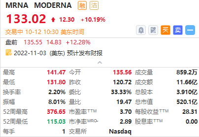MODERNA早盘涨超10%,消息称其将与默沙东联合开发癌症疫苗MRNA-4157/V940。