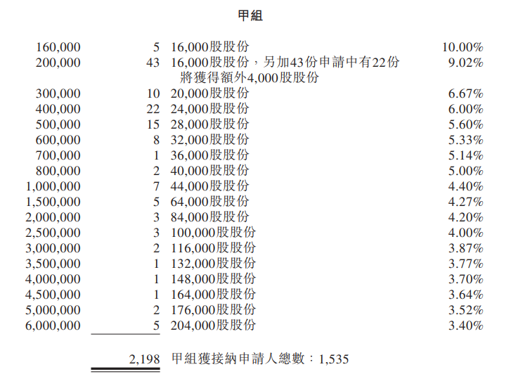 香港公开发售股份已获充分超额认购,相当于香港公开发售项下初步可供认购的香港公开发售股份总数约14.10倍。香港公开发售项下可供认购的香港公开发售股份最终数目为2500万股股份,相当于全球发售项下初步可供认购的发售股份总数的10%,并已分配予香港公开发售项下的1557名获接纳申请人。