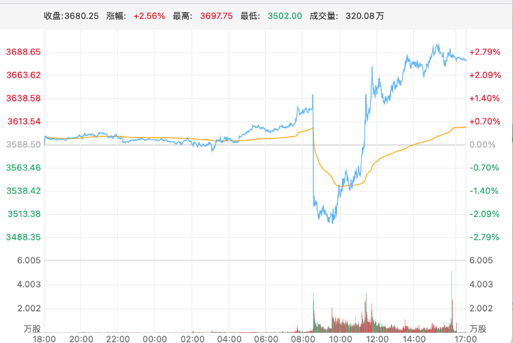 盘中,指数V型反转,一路走高。
