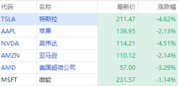 华盛资讯10月14日消息,纳斯达克指数、标普500指数盘中跌超1%,布伦特原油日内一度大跌超3%。明星科技股走跌,特斯拉、英伟达跌超4%,亚马逊、苹果跌超2%,微软跌超1%。