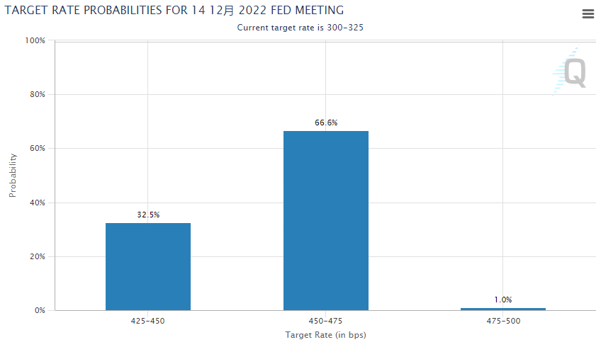 此前芝商所的“美联储观察工具”显示,利率在今年年底就有超三分之二的概率升到4.5%-4.75%的范围。