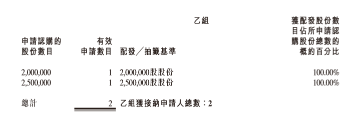 香港公开发售合共接获2875份有效申请,认购合共2715万股香港发售股份,相当于香港公开发售项下初步可供认购的H股的约1.05倍。