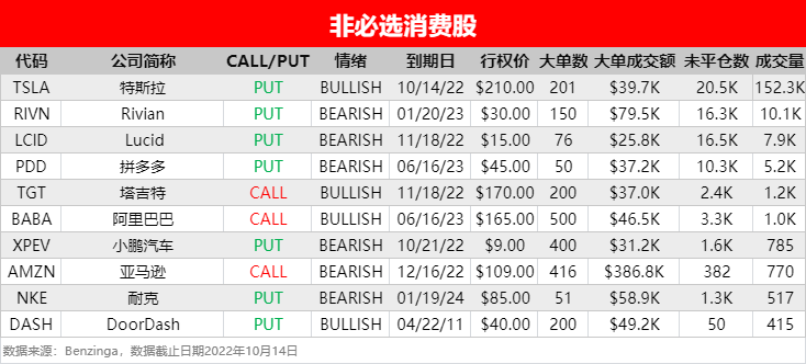 周五(10月14日),非必选消费、信息技术和基础工业板块相关个股出现较多活跃单,按照当日成交量排行,榜单TOP分别如下: