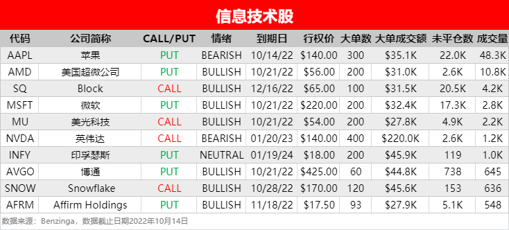 当日新增上榜:Block、美光科技、印孚瑟斯、博通、Snowflake、Affirm Holdings