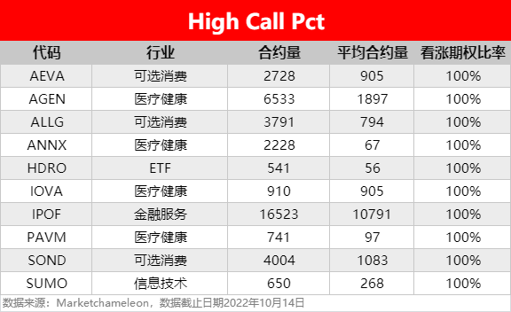 注:High Call Pct/High Put Pct是指相关期权标的当前看涨/看跌比例大小,该比值越高意味着该期权标的看涨/看跌的合约占比越高。