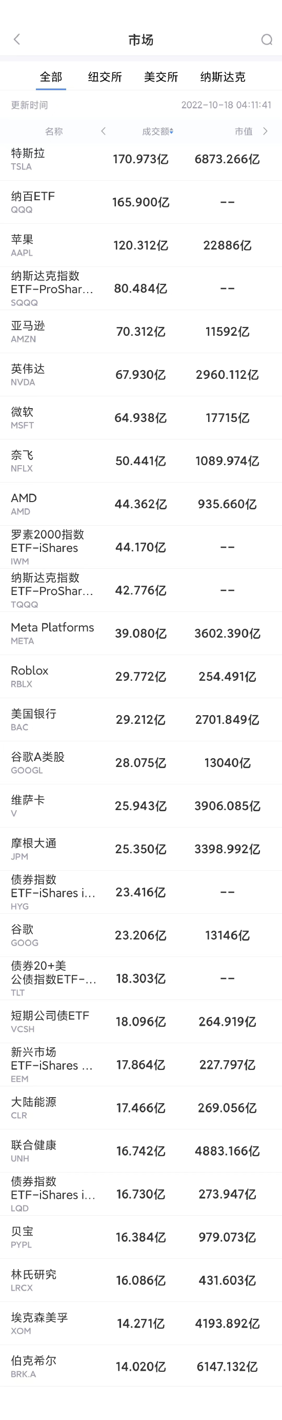 以下为美股当日交易最活跃的20只股票(按成交额):